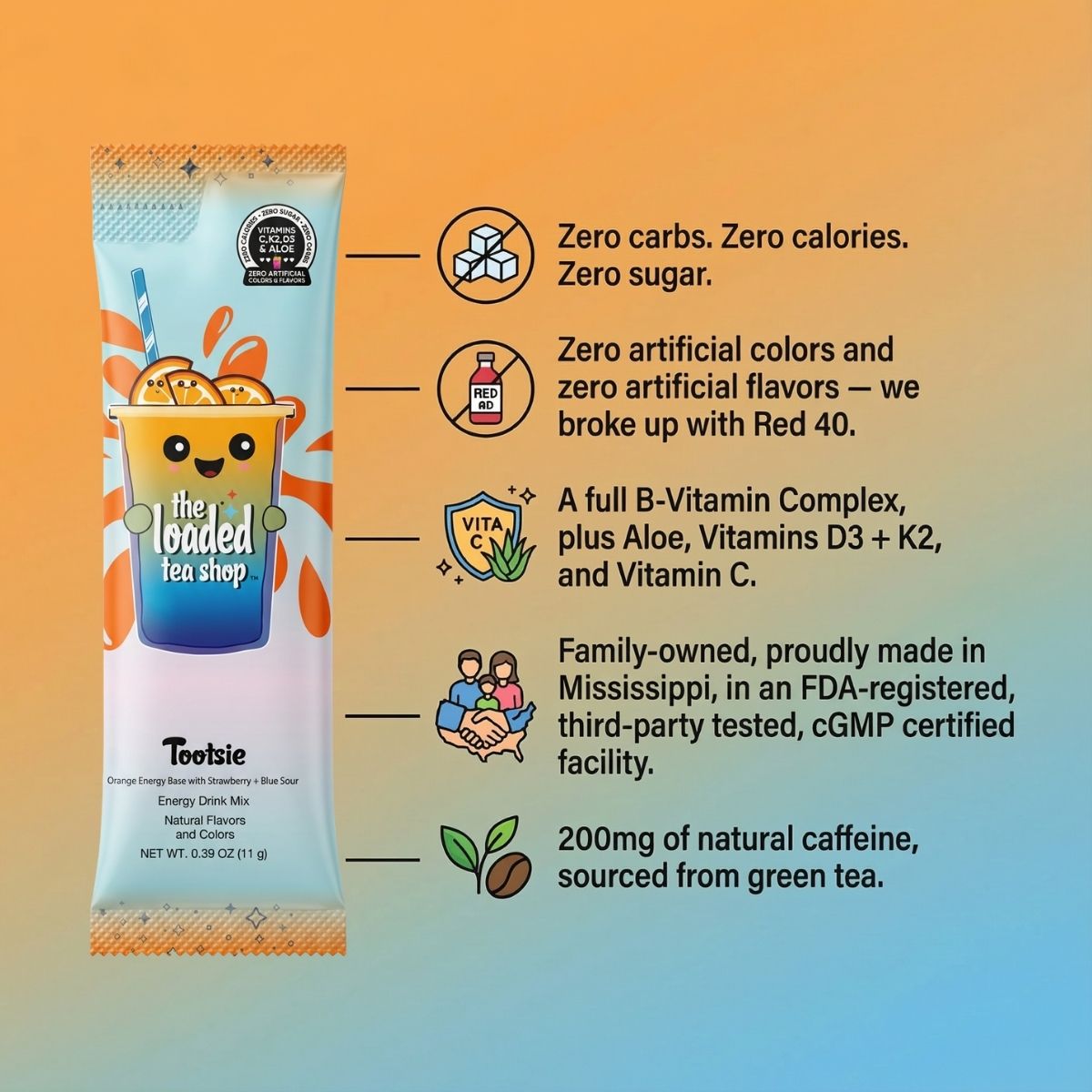 - Boost Performance Naturally with Vitamin B6, B12, Taurine, and More Featuring The Loaded Teashop™ Energy Base